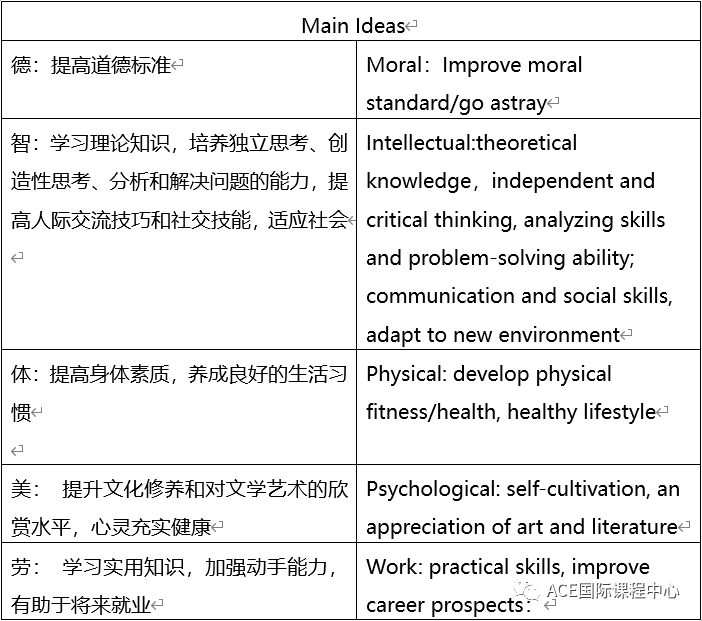 首先,烤鸭们要明确,教育目的是重点,因为教学方法和教学内容都是为教育目的服务的,所以目的上从这五个方面思考:德智体美劳